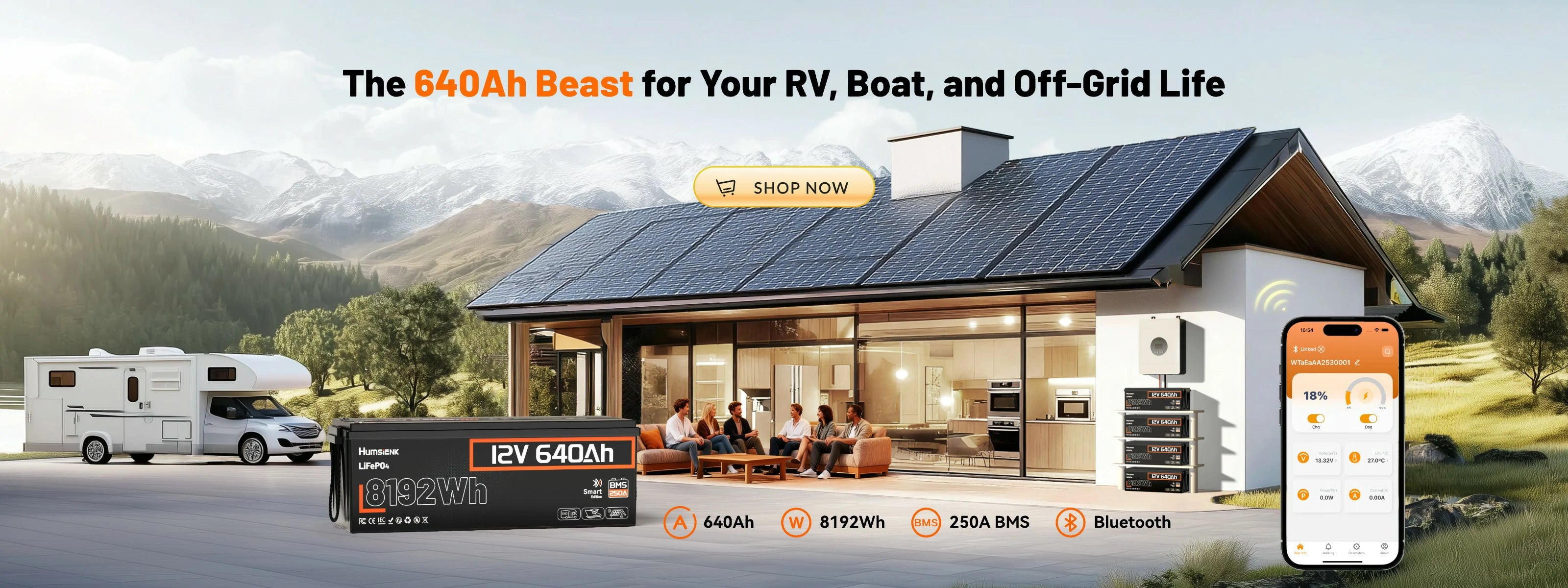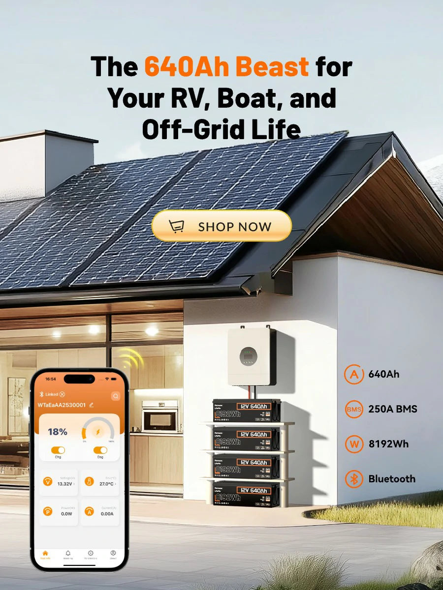 Humsienk 12V 640Ah Bluetooth LiFePO4 Battery 8.19kWh Mega Power with 250A BMS Protection for RVs