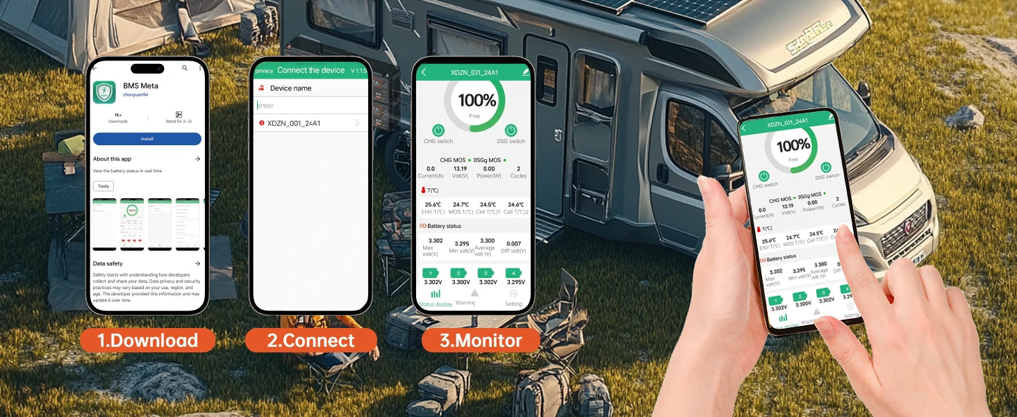 • Built-in BMS Protection: This lithium batteries features a built-in 200A BMS protection plate that automatically disconnects if the discharge current exceeds, providing enhanced safety.