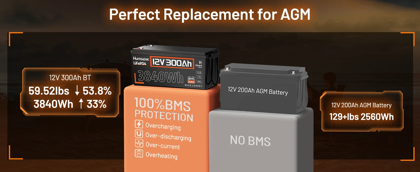 • Perfect Fit: Designed to seamlessly fit the battery box, our 300Ah LiFePO4 battery eliminates the need for a larger box, simplifying installation.